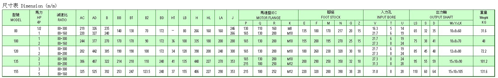 尺寸表 Dimension (m/m) (點擊小圖放大)